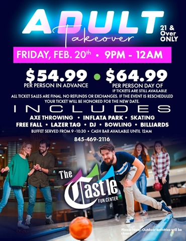 Bowling- Roller Skating- Billiards -Axe Throwing- Inflatapark-Food21 Years and Over , Cash Bar Available