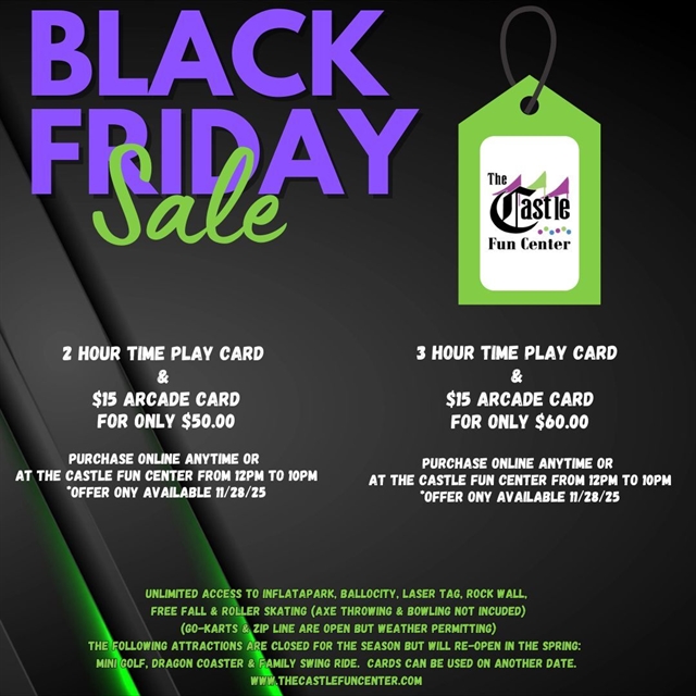 Black Friday Special Offer! 3 HOUR ACTIVITY CARD WITH 1500 ARCADE POINTS $60***Please note, if you are purchasing multiple time play gift cards as separate gifts, you must purchase each card as it’s own transaction otherwise you will only be receiving one barcoded email for all cards. Includes 3 Hours of unlimited activities. Time play card valid for one person; non-transferable. Not Valid for Axe throwing or Bowling.